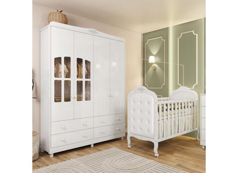 O menor preço encontrado no Brasil para Quarto de Bebê Berço com Capitonê e Guarda Roupa com Janela Maya Clássico Espresso Móveis Branco Brilho/Branco atualmente é R$ 2.315,23.
