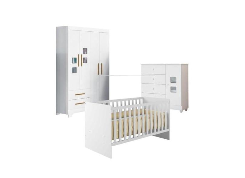 O menor preço encontrado no Brasil para Quarto de Bebê com Berço Life, Cômoda 1 Porta 4 Gavetas Life e Guarda Roupa 4 Portas 2 Gavetas Fly Branco atualmente é R$ 1.382,04.