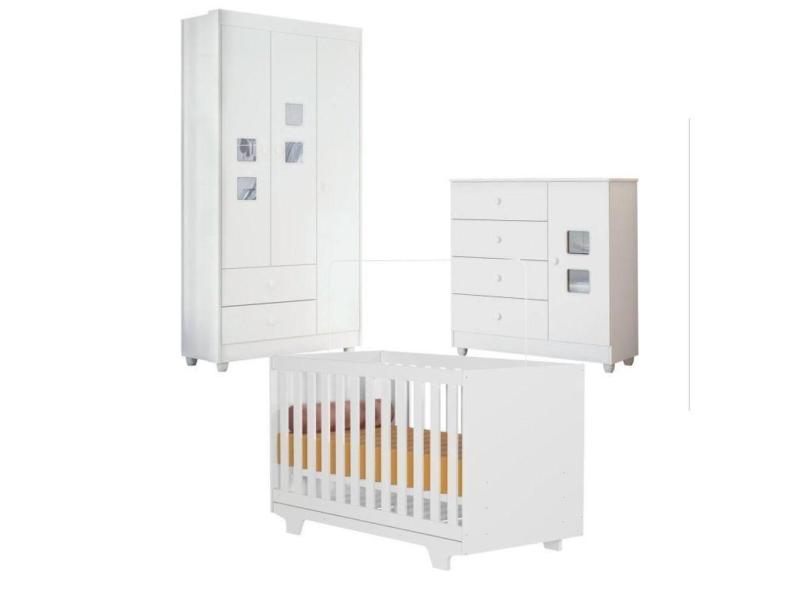 Quarto de Bebe com Berço Mini Cama 100% MDF Life Cômoda Life Guarda-Roupa Life Branco