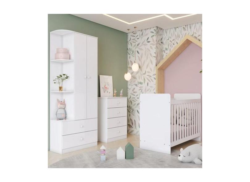 O menor preço encontrado no Brasil para Quarto De Bebê Com Guarda-Roupa 2 Portas Cômoda E Berço Labirinto Bran atualmente é R$ 1.036,62.