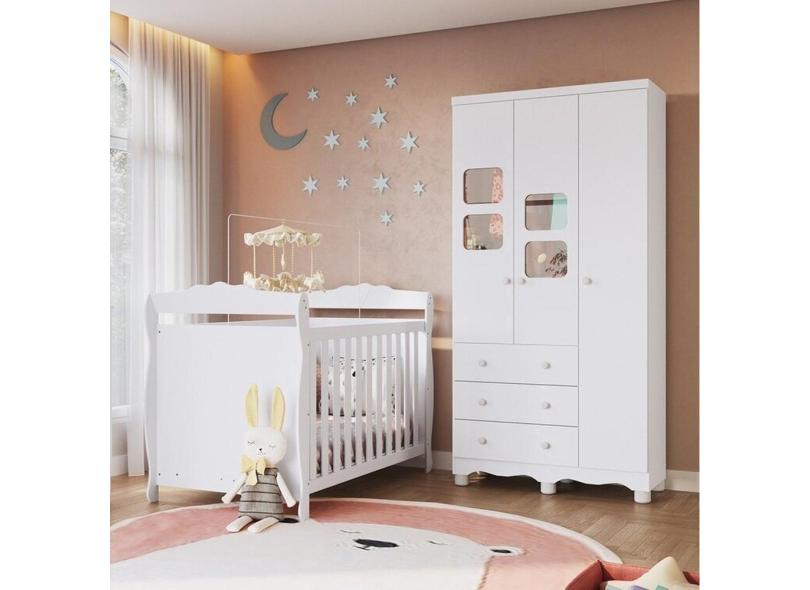 O menor preço encontrado no Brasil para Quarto De Bebê Com Guarda Roupa 3 Portas Com Janelas E Berço Americano Nina 100% Mdf Espresso Móveis Branco Brilho atualmente é R$ 1.168,75.