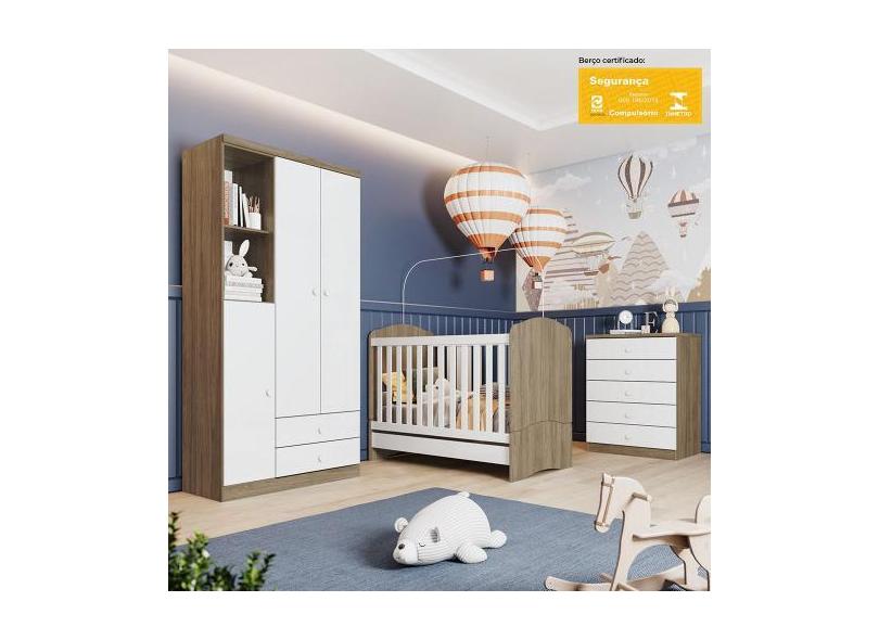 O menor preço encontrado no Brasil para Quarto De Bebê Com Guarda Roupa 3 Portas Cômoda E Berço Pimpolho Casa atualmente é R$ 1.177,77.