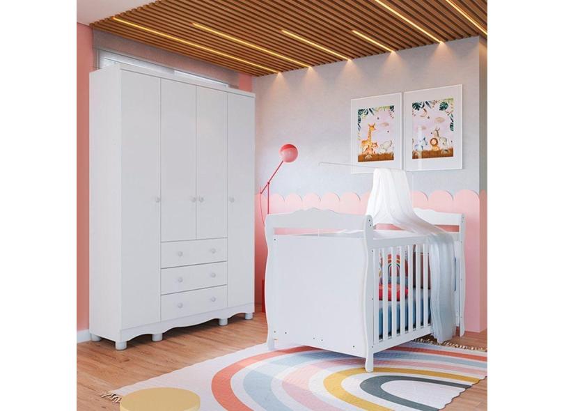 O menor preço encontrado no Brasil para Quarto de Bebê com Guarda Roupa 4 Portas 3 Gavetas e Berço Mini Cama Nina 100% Mdf Espresso Móveis Branco Brilho atualmente é R$ 1.215,95.