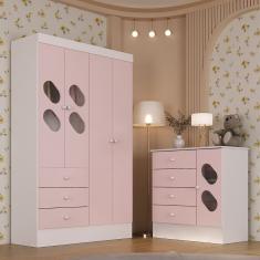 Quarto de Bebê com Guarda Roupa 4 Portas 3 Gavetas e Cômoda 4 Gavetas