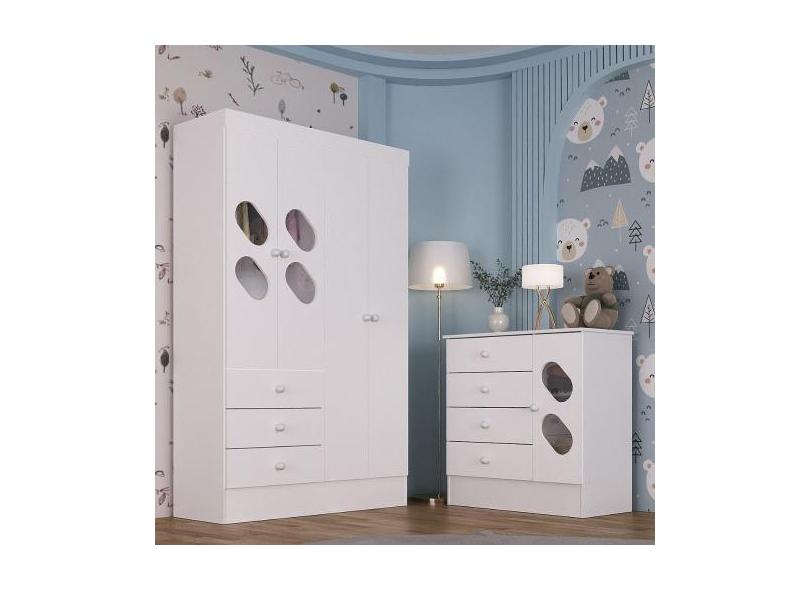 Quarto de Bebê com Guarda Roupa 4 Portas 3 Gavetas e Cômoda 4 Gavetas