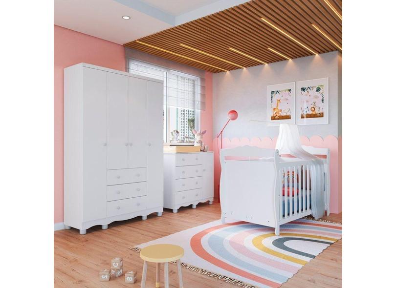 O menor preço encontrado no Brasil para Quarto de Bebê com Guarda Roupa 4 Portas Cômoda 1 Porta 4 Gavetas e Berço Nina 100% Mdf Espresso Móv Branco Brilho atualmente é R$ 1.610,45.