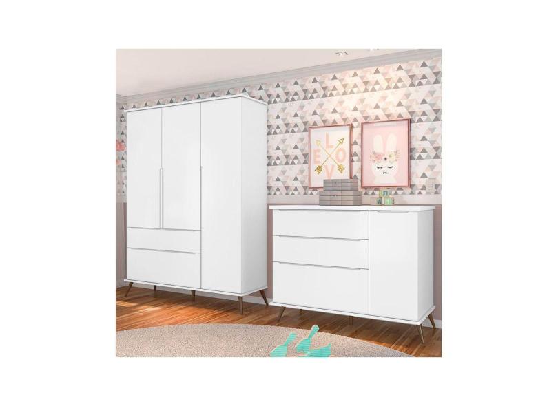 Quarto de Bebê Cômoda Infantil e Guarda Roupa Infantil 3 Portas e 2 Gavetas Melissa Retrô 100% MDF Cor Branco - Phoenix
