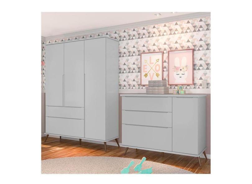 Quarto de Bebê Cômoda Infantil e Guarda Roupa Infantil 3 Portas e 2 Gavetas Melissa Retrô 100% MDF Cor Cinza - Phoenix B