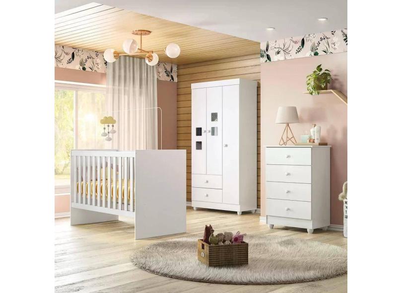 Quarto de Bebê Completo 100% MDF com Guarda Roupa 3 Portas, Cômoda e Berço Life Espresso Móveis Branco