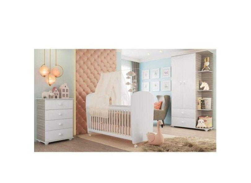 Quarto de Bebê Completo Algodão Doce com Guarda Roupa 2 Portas, Cômoda e Berço Espresso Móveis Fresno/Branco