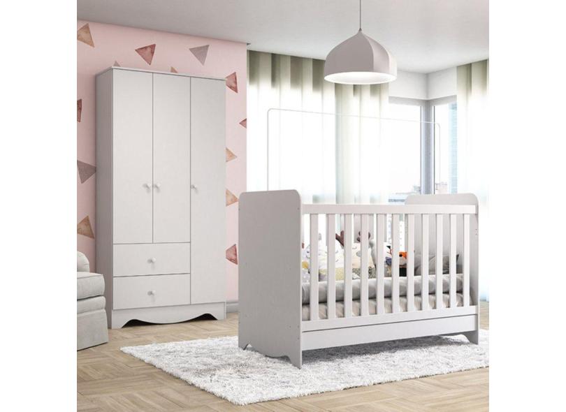 Quarto de Bebê Completo Berço Americano 3 em 1 com Guarda Roupa 3 Portas Pirueta Espresso Móveis Branco Brilho