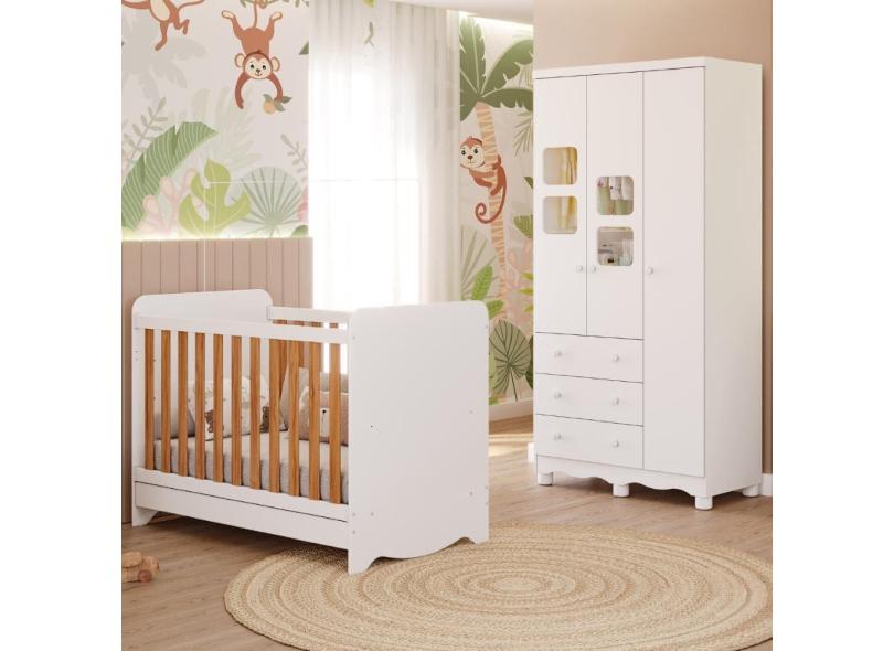 Quarto de Bebê Completo Berço Americano Ben 3 Em 1 Minicama Minisofa Guarda Roupa Uli 3 Portas 3 Gavetas 100%MDF Móveis Peroba