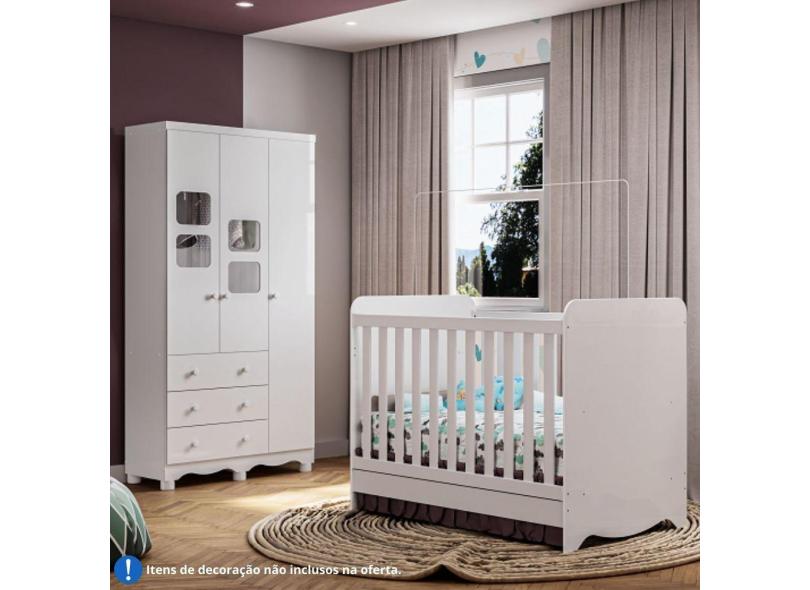 Quarto de Bebê Completo Berço Americano Ben 3 Em 1 Minicama Minisofa Guarda Roupa Uli 3 Portas 3 Gavetas Móveis Peroba