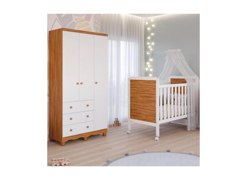 Quarto De Bebê Completo Berço Americano Cloe 2 Em 1 Guarda Roupas 3 Po
