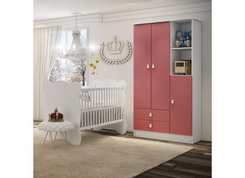 O menor preço encontrado no Brasil para Quarto de Bebê Completo Berço com Guarda Roupa 3 Portas 2 Gavetas 2 Nichos Algodão Doce Móveis Percasa Branco/Rosa atualmente é R$ 752,92.