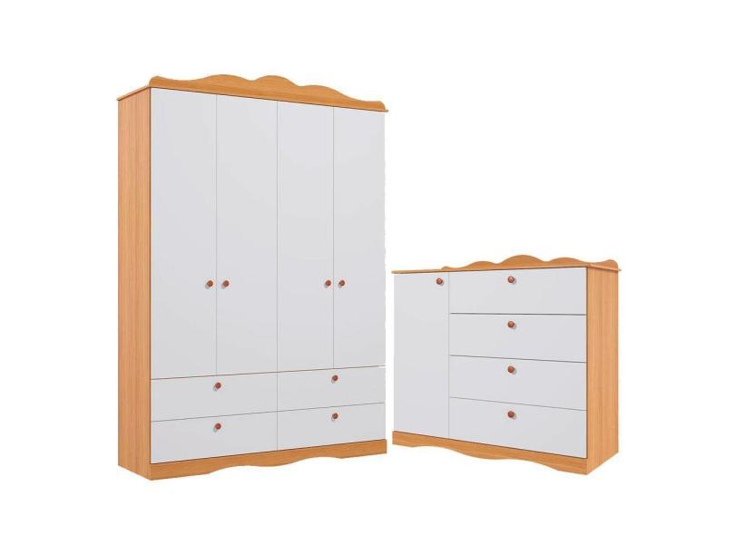 Quarto de Bebê Completo com Cômoda e Guarda Roupa 100% MDF Encanto Permóbili Baby Nature/Branco