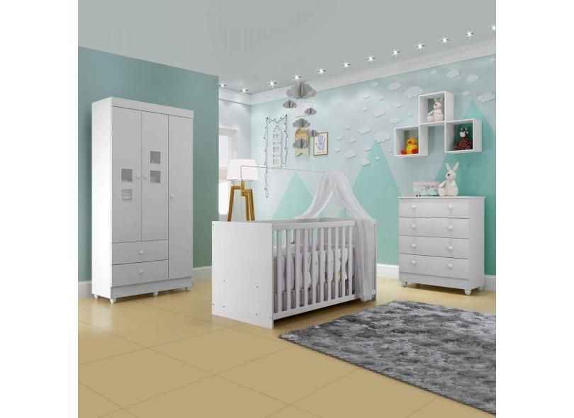 Quarto de Bebê Completo com Guarda Roupa 3 Portas, Cômoda e Berço Life