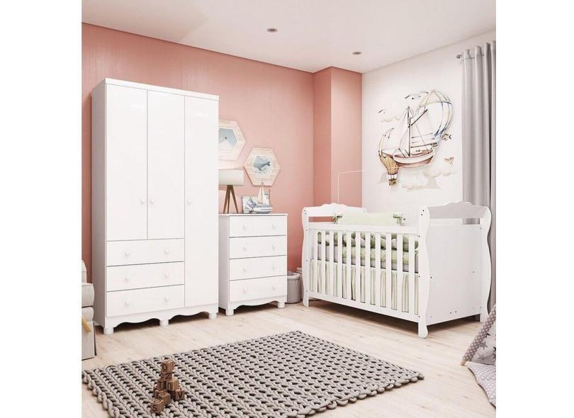 O menor preço encontrado no Brasil para Quarto de Bebê Completo com Guarda-roupa 3 Portas e Cômoda e Berço Nina 100% Mdf Espresso Móveis Branco Brilho atualmente é R$ 1.327,62.