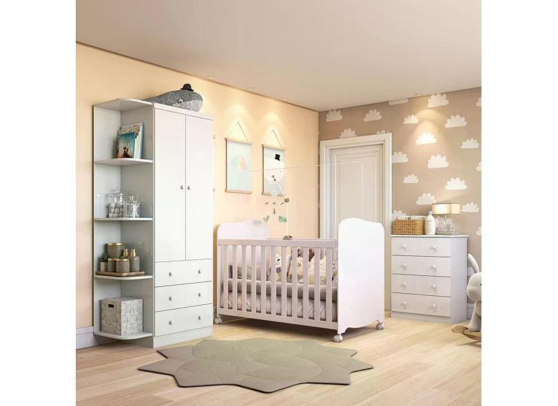 O menor preço encontrado no Brasil para Quarto de Bebê Completo com Guarda Roupa Cômoda e Berço Mini Cama 100% MDF Pega-Pega Móveis Peroba Branco Brilho atualmente é R$ 1.194,90.