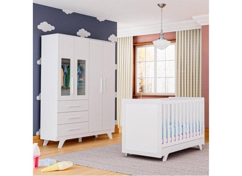 O menor preço encontrado no Brasil para Quarto de Bebê Guarda Roupa 4 Portas 3 Gavetas Berço Retrô Móveis Peroba Branco Brilho atualmente é R$ 1.812,31.