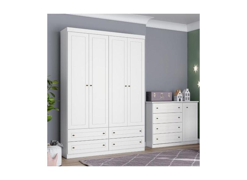 Quarto De Bebê Guarda-Roupa 4 Portas 4 Gavetas E Cômoda 4 Gavetas 1 Po