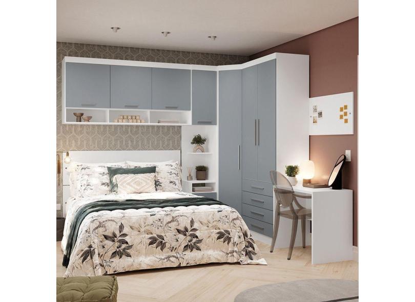 O menor preço encontrado no Brasil para Quarto De Canto Casal Com Guarda Roupas Cabeceira E Escrivaninha Alpes Luciane Móveis Branco Pf Com Grey Sky Pf atualmente é R$ 3.380,90.