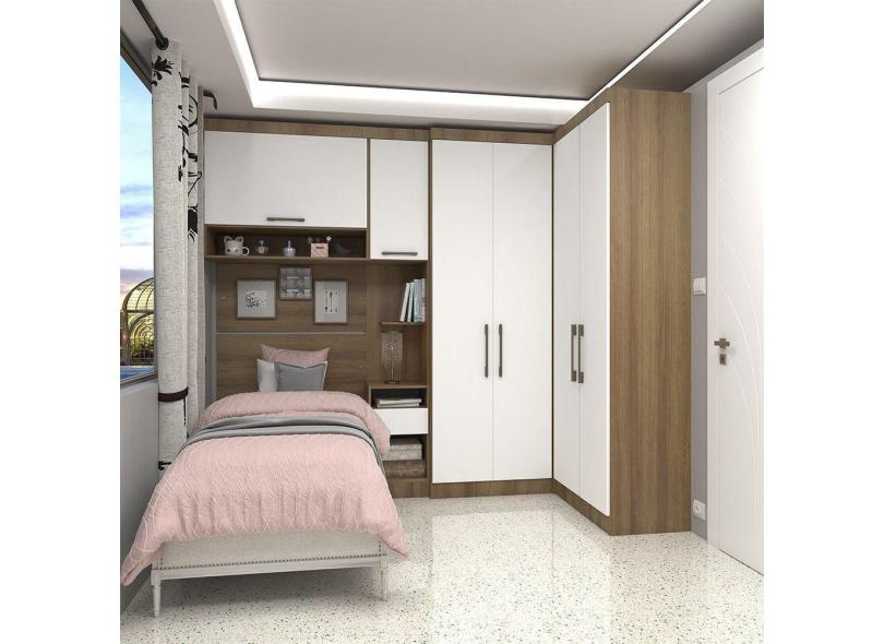 Quarto de Canto Solteiro com Guarda Roupas Cabeceira e Mesa de Cabeceira Paris Luciane Móveis