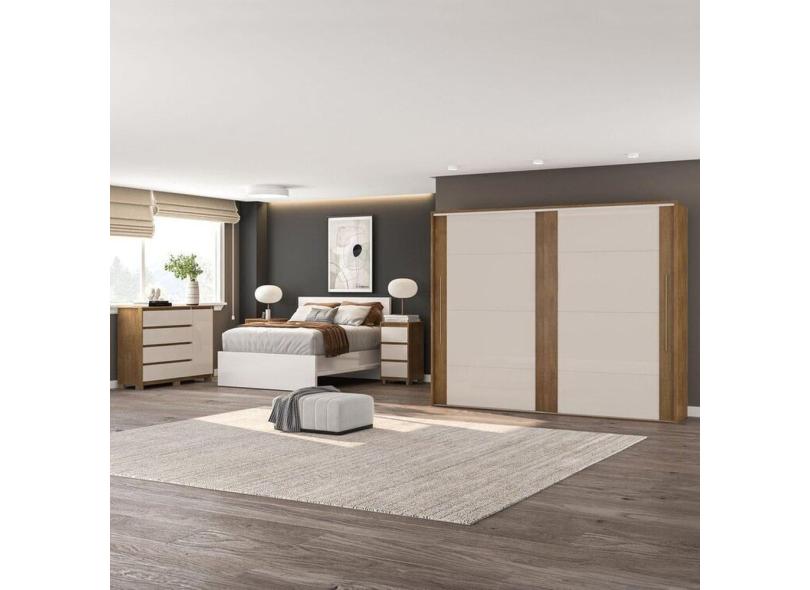 Quarto Guarda-Roupa 2 Portas Cômoda 4 Gavetas 1 Porta 2 Mesas de Cabeceira 3 Gavetas Freijó/Off White