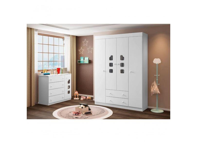 Quarto Infantil Bebê Lívia Cômoda E Guarda Roupa Branco phoenix Baby