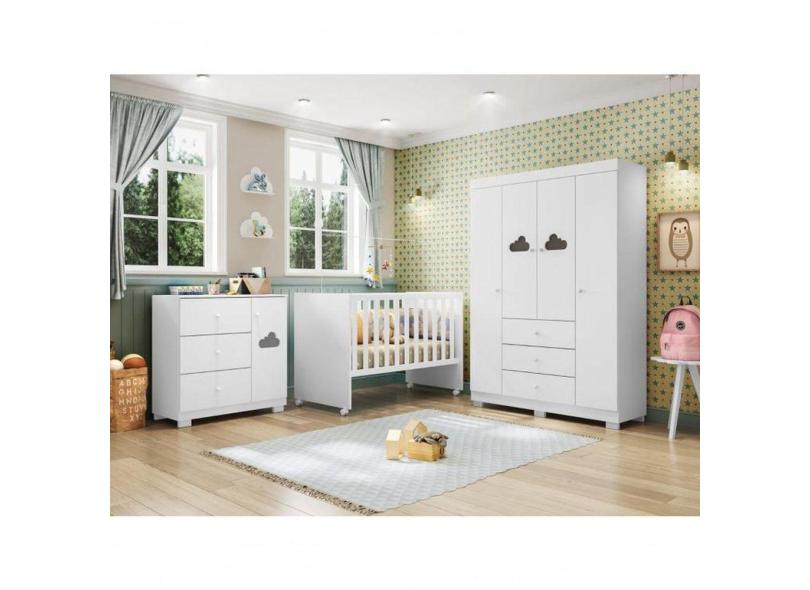 Quarto Infantil Berço Doce Sonho Com Cômoda E Guarda Roupa Infantil Ane Cor Branco - Phoenix