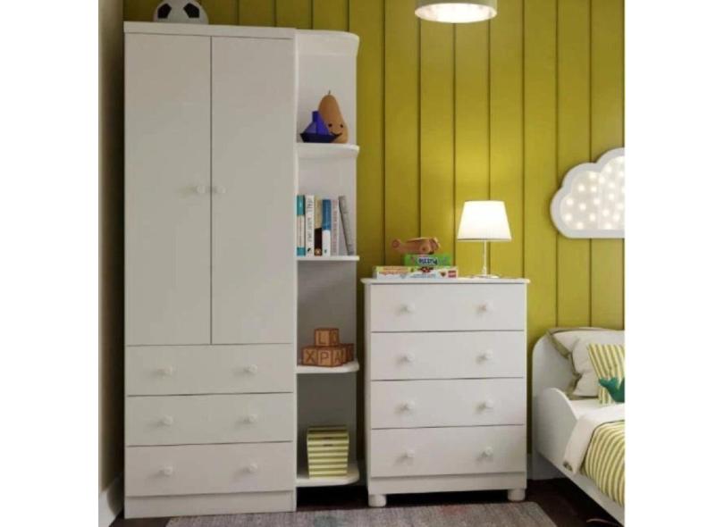 O menor preço encontrado no Brasil para Quarto Infantil com Cômoda 4 Gavetas Guarda-Roupa 2 Portas e Prateleira Fofura Espresso Móveis Branco Brilho atualmente é R$ 761,56.