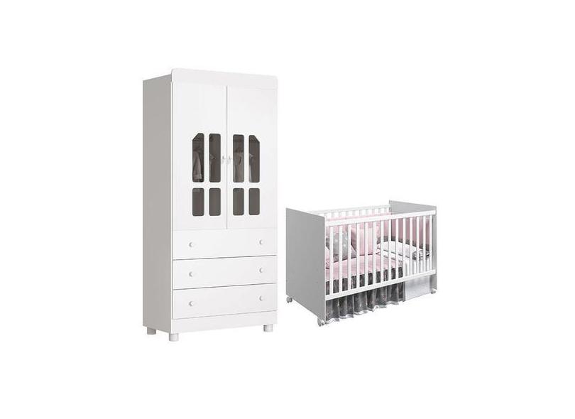 Quarto Infantil Com Guarda Roupa 2 Portas Katatau E Berço Tico Branco