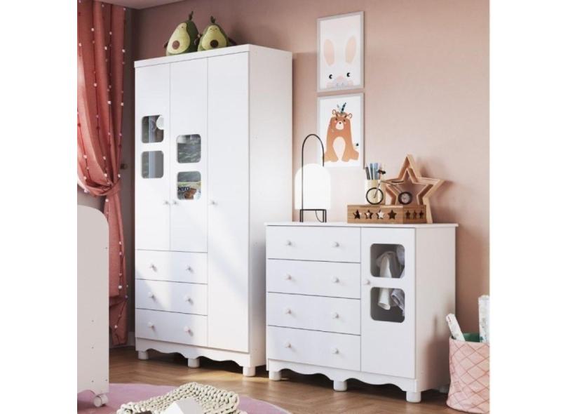 O menor preço encontrado no Brasil para Quarto Infantil com Guarda Roupa 3 Portas 3 Gavetas e Cômoda 1 Porta 4 Gavetas Mimo Espresso Móveis Branco Brilho atualmente é R$ 1.087,20.