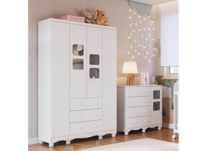 O menor preço encontrado no Brasil para Quarto Infantil com Guarda Roupa 4 Portas e Cômoda 1 Porta com Janela Mimo Espresso Móveis Branco Brilho atualmente é R$ 1.289,99.