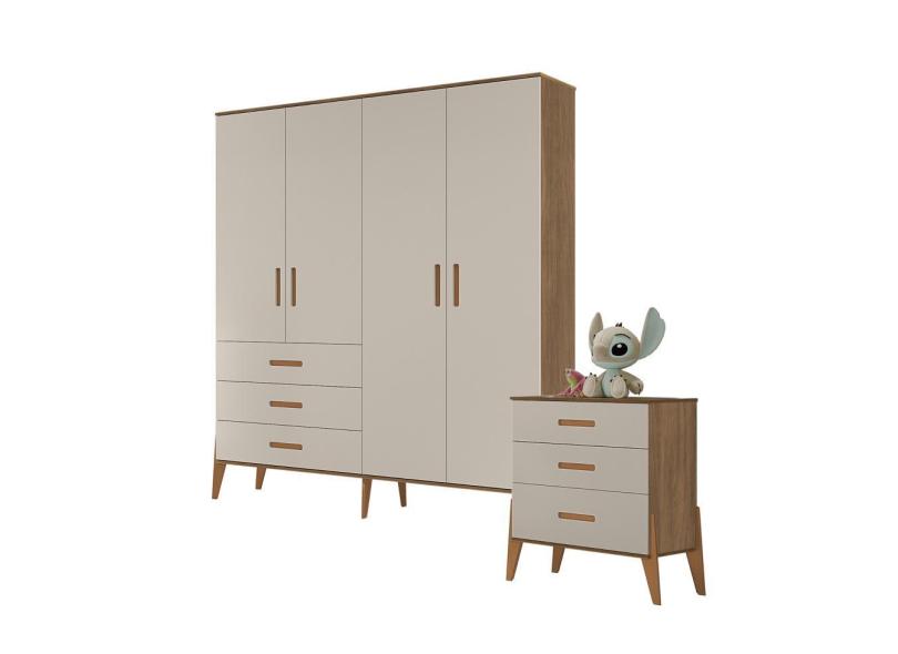 Quarto Infantil Com Guarda Roupa 4 Portas E Comoda Carvalho Canaã Baby