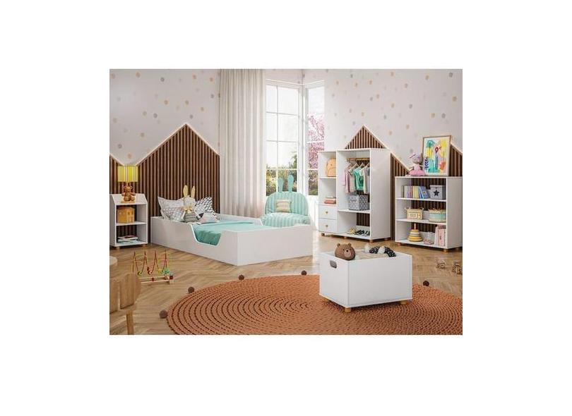 Quarto Infantil Completo Com Cama Guarda Roupa Estante Mesa De Cabecei
