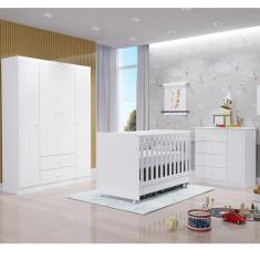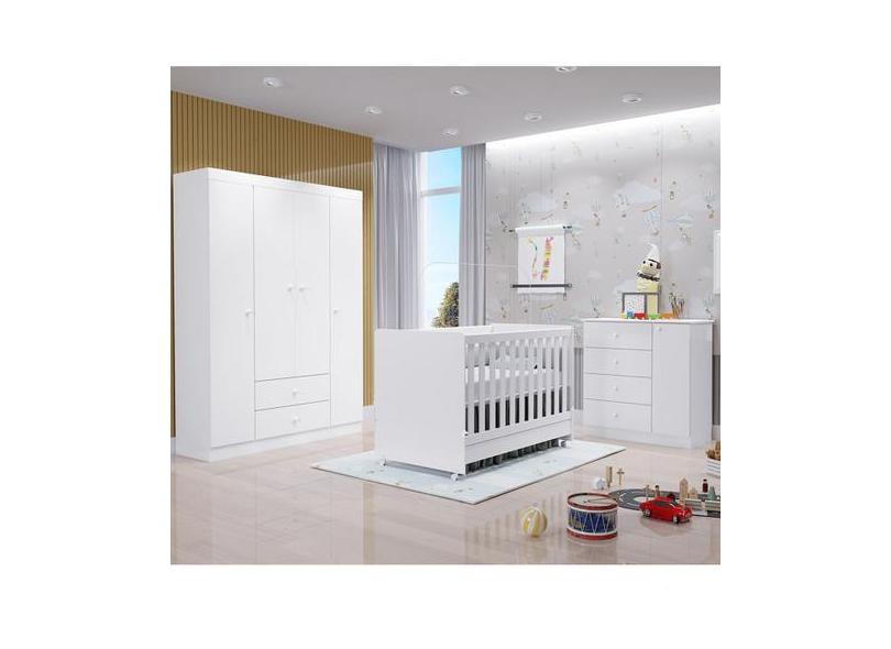 Quarto Infantil Completo Com Guarda Roupa 4 Portas, Cômoda 4 Gavetas E