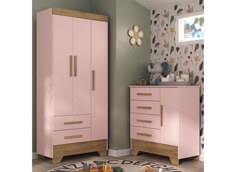 O menor preço encontrado no Brasil para Quarto Infantil Completo Guarda Roupa 3 Portas 2 Gavetas com Cômoda Selene Espresso Móveis Rosa Fosco/Marrom atualmente é R$ 754,42.