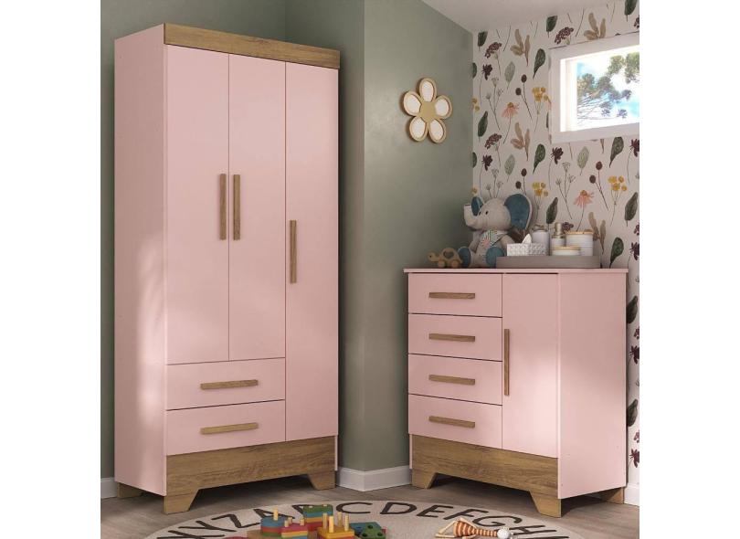 O menor preço encontrado no Brasil para Quarto Infantil Completo Guarda Roupa 3 Portas 2 Gavetas com Cômoda Selene Espresso Móveis Rosa Fosco/Nature atualmente é R$ 838,06.