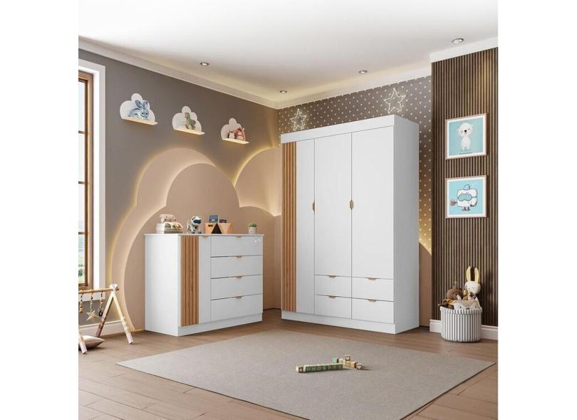 O menor preço encontrado no Brasil para Quarto Infantil Completo Guarda-Roupa 3 Portas 4 Gavetas Com Cômoda 100% Mdf Ayla Branco atualmente é R$ 1.489,96.