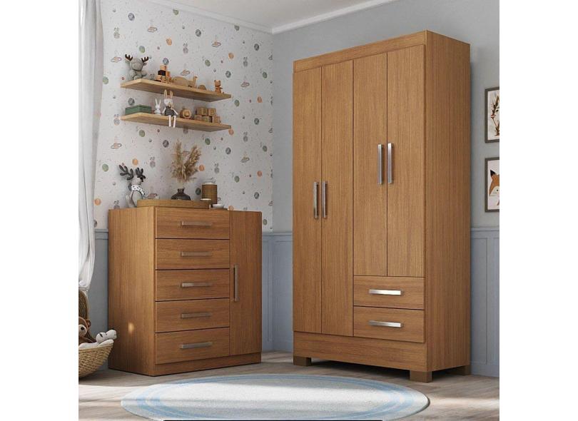 O menor preço encontrado no Brasil para Quarto Infantil Completo Guarda Roupa 4 Portas 2 Gavetas com Cômoda Amy Espresso Móveis Cinamomo atualmente é R$ 650,70.