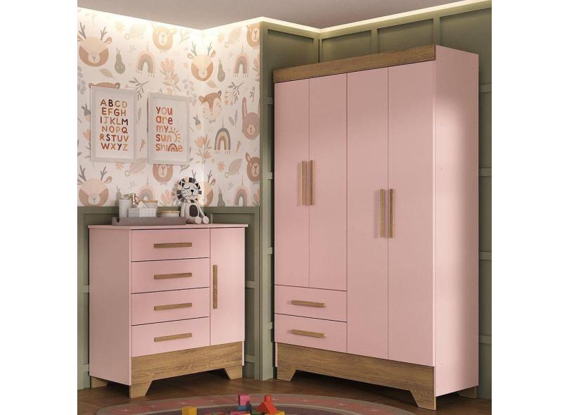 O menor preço encontrado no Brasil para Quarto Infantil Completo Guarda Roupa 4 Portas 2 Gavetas com Cômoda Liz Rosa Fosco/Marrom atualmente é R$ 787,30.