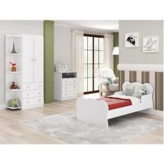 Quarto Infantil Guarda Roupa 2 Portas 3 Gavetas Cômoda 3 Gavetas 1 Nicho Mini Cama DJD Móveis Azul/Branco