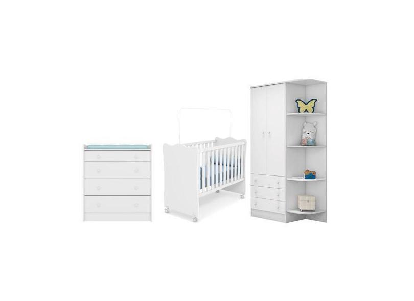 Quarto Infantil Guarda Roupa, Cômoda Trocador E Berço Doce Sonho Branc