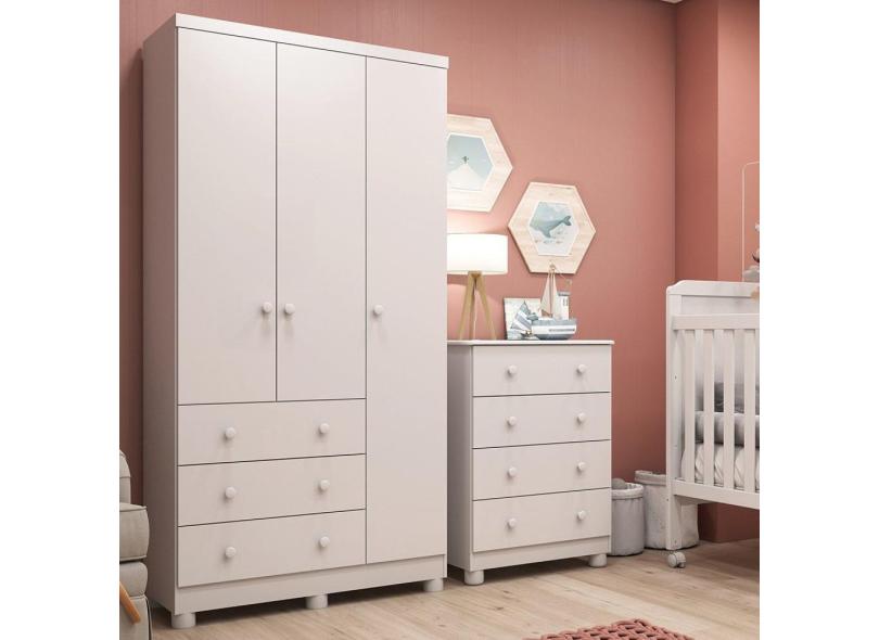 O menor preço encontrado no Brasil para Quarto Infantil Guarda Roupas 3 Portas Cômoda 4 Gavetas Mimo 100% mdf Espresso Móveis Branco Brilho atualmente é R$ 887,76.