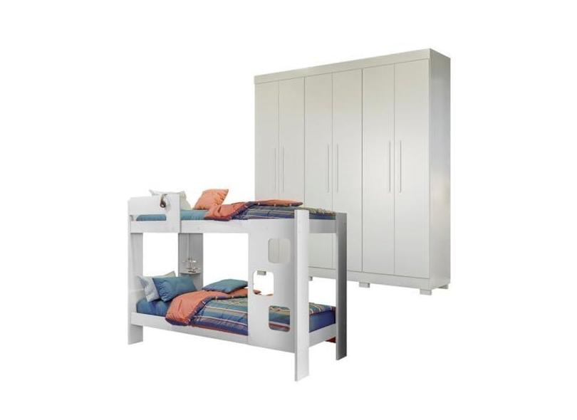 O menor preço encontrado no Brasil para Quarto Infantil/juvenil com Beliche Vegas e Guarda Roupa 6 Portas 4 Gavetas Flórida 100% Mdf Branco atualmente é R$ 1.940,78.