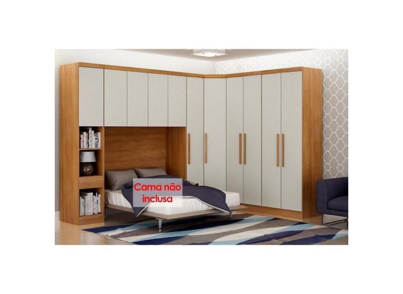 Quarto Rizon 6 Peças (1 Armário Ponte 1 Closet 3 Guarda Roupas 1 Complemento) Freijo Cumaru C- Fendi