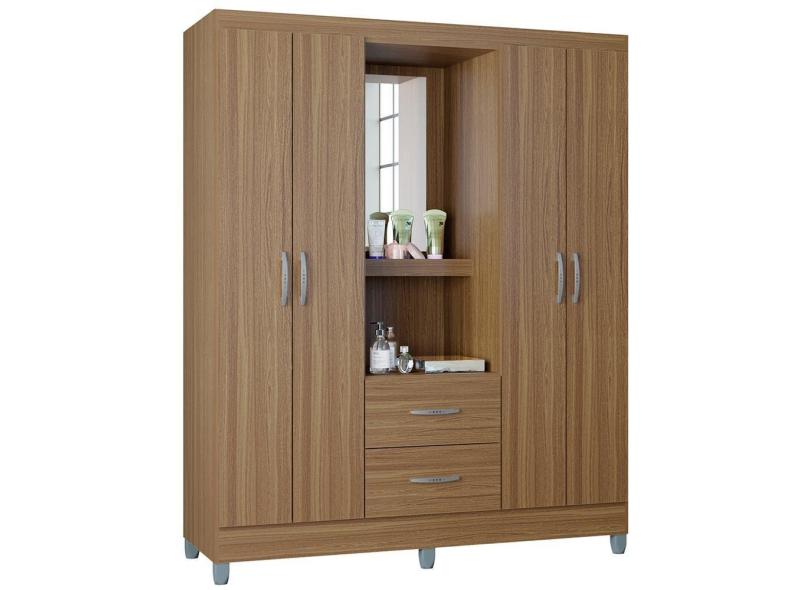 Roupeiro 4 Portas Com Espelho 966 Castanha Poqq Castanha