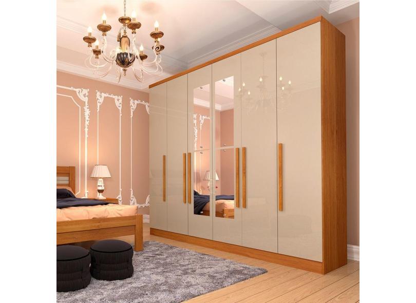 Roupeiro 6 Portas Veneza Com Espelho Cinamomo/ Off White