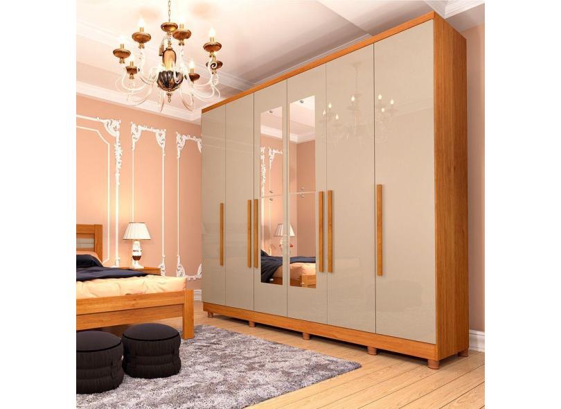 Roupeiro 6 Portas Veneza Com Espelho E Pés Cinamomo/ Off White
